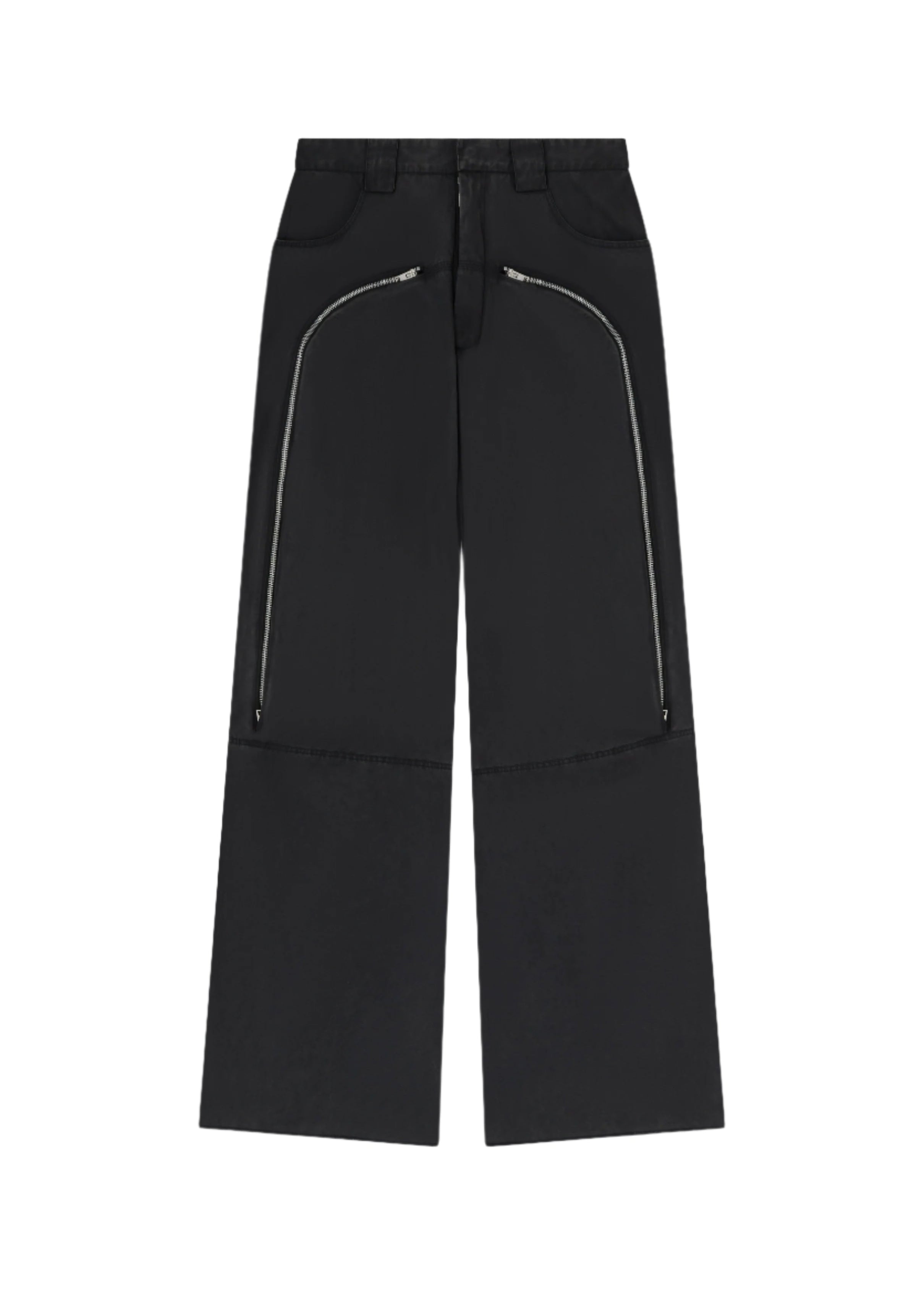 A classic, reimagined. The Bumster Skirt combines the formalities of a Pencil Skirt with the iconoclasm of bumsters, as it features dual side zippers, and a rear zipper that alters the look and effect of the skirt. Likewise, heat-pressed embossing on the viscose on the front provides a reptilian effect, while crinkles on the material further accentuate the scaled nature of the FW24 runway piece.